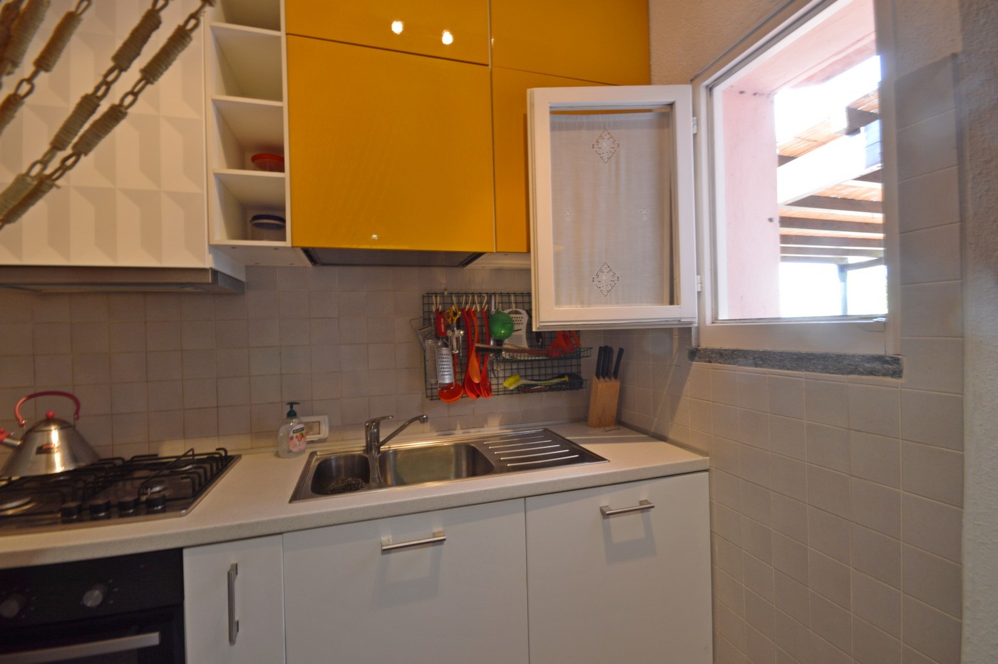 A soli 80 metri dalla spiaggia in ghiaia, con terrazza panoramica appartamento libero sui quattro lati, composto da ampio soggiorno con zona cucina a vista, camera matrimoniale e piccolo studio che può ospitare un letto singolo o a castello, due bagni finestrati, uno con vasca e l’ altro con doccia, ampia terrazza in parte verandata con stupenda vista mare, ultriore spazio esterno con barbecue, anche questo con vista mare, cantina di mq. 10 su un lato della casa.